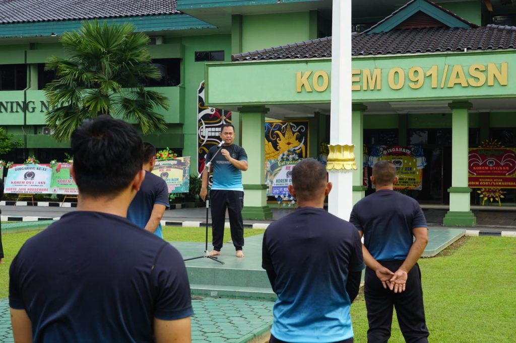 KOREM 091/Aji Surya Natakusuma (ASN) menggelar latihan Pencak Silat Militer (PSM) sebagai bagian dari program pembinaan fisik prajurit.