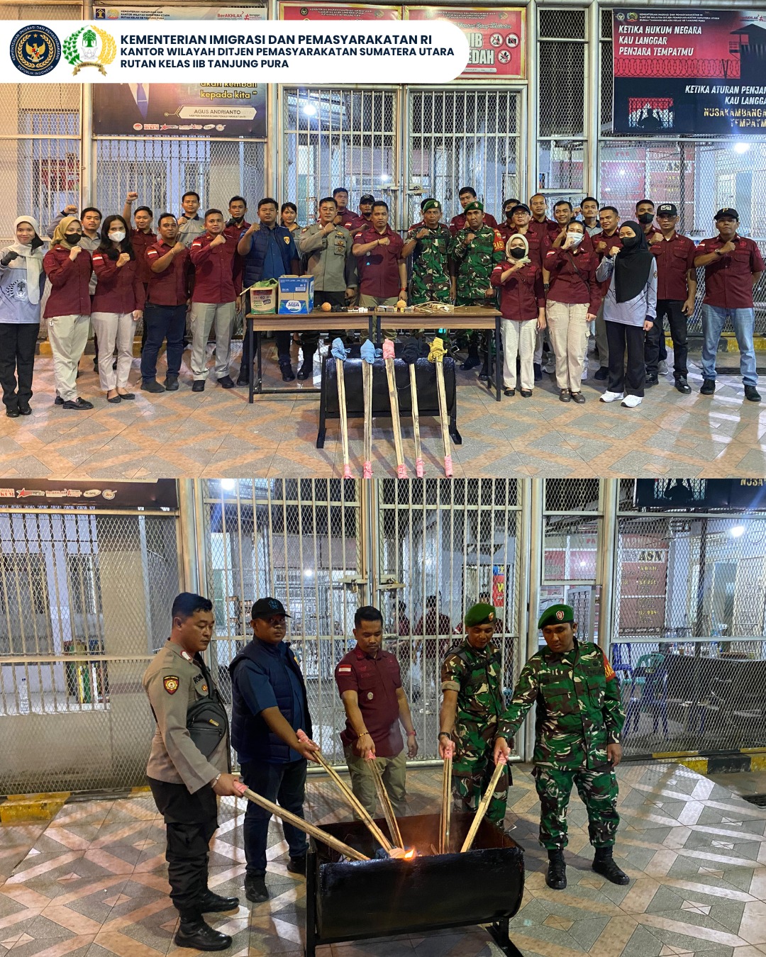 Tanjung Pura Sumut -Rumah Tahanan Negara Kelas IIB Tanjung Pura Kanwil Direktorat Jenderal Pemasyarakatan Sumatera Utara gelar razia gabungan bersama BNN, TNI,dan Polri guna mencegah gangguan keamanan dan ketertiban. Kamis (12/09)
