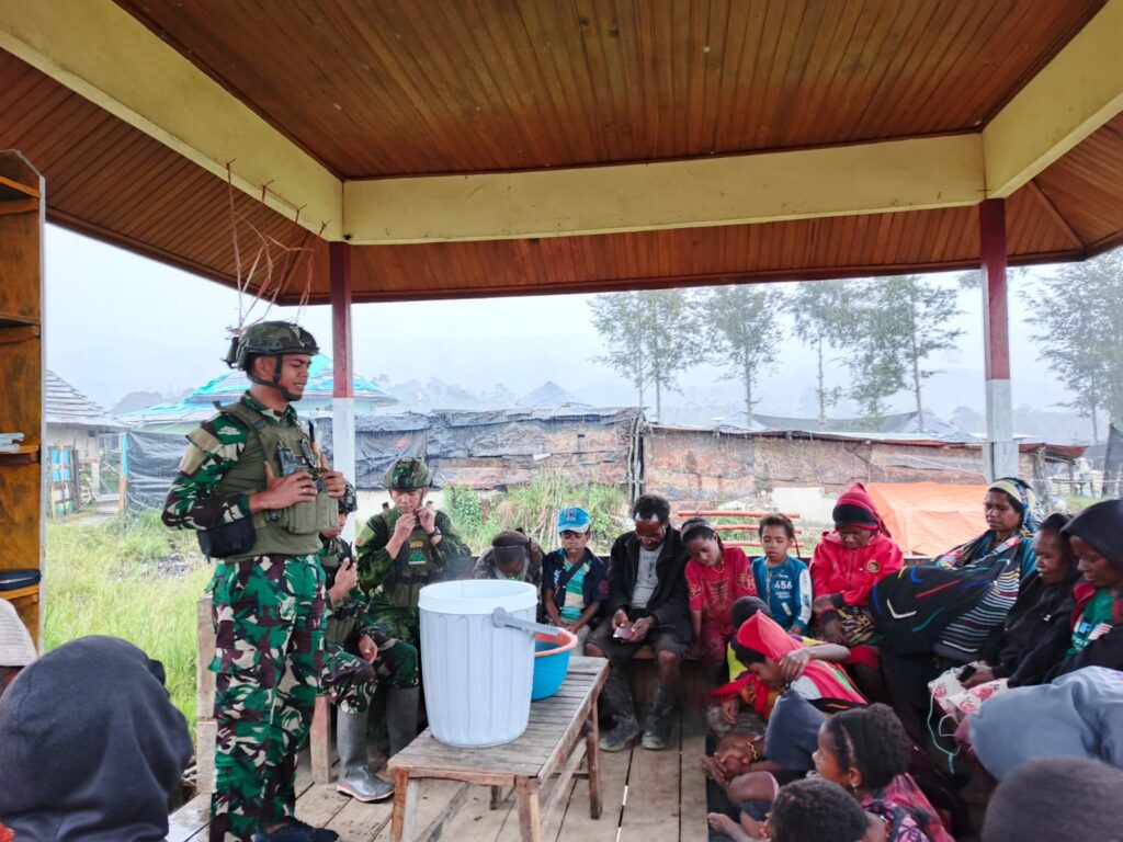 Kampung Eromgobak, Papua – Suasana penuh kekeluargaan dan kehangatan iman terasa di Kampung Eromgobak, Distrik Omukia, Kabupaten Puncak, Papua, pada Minggu (4/5/2025). Anggota Pos Eromaga Satgas Pamtas Mobile Yonif 700/WYC yang dipimpin oleh Letda Inf Sudirman menggelar ibadah bersama dan dilanjutkan dengan acara makan bersama dengan warga setempat.