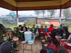 Kegiatan yang berlangsung sederhana namun penuh makna ini menjadi wujud nyata upaya TNI dalam menjalin silaturahmi yang erat dengan masyarakat Papua. Usai melaksanakan ibadah, anggota pos dan warga Kampung Eromgobak berkumpul untuk menikmati hidangan sederhana yang telah disiapkan bersama.