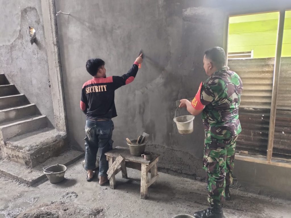 Tapteng-Babinsa Koramil 04/Pinangsori Kodim 0211/Tapanuli Tengah.Koptu M.Daud membantu pembuatan rumah milik salah satu warga di Desa Sihapas,Kecamatan Sukabangun Kabupaten Tapanuli tengah,Jumat (14/11/2025).