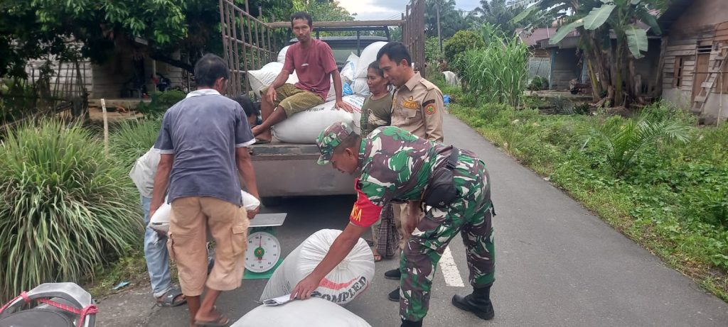 Tapanuli Tengah – Babinsa Koramil 02/Sorkam, Serka Edi Herwanto, mendampingi Petugas Penyuluh Lapangan (PPL) dan Bulog dalam kegiatan penyerapan gabah padi milik petani di Desa Aek Raso, Kecamatan Sorkam Barat, Kabupaten Tapanuli Tengah, Selasa (21-04-2026).