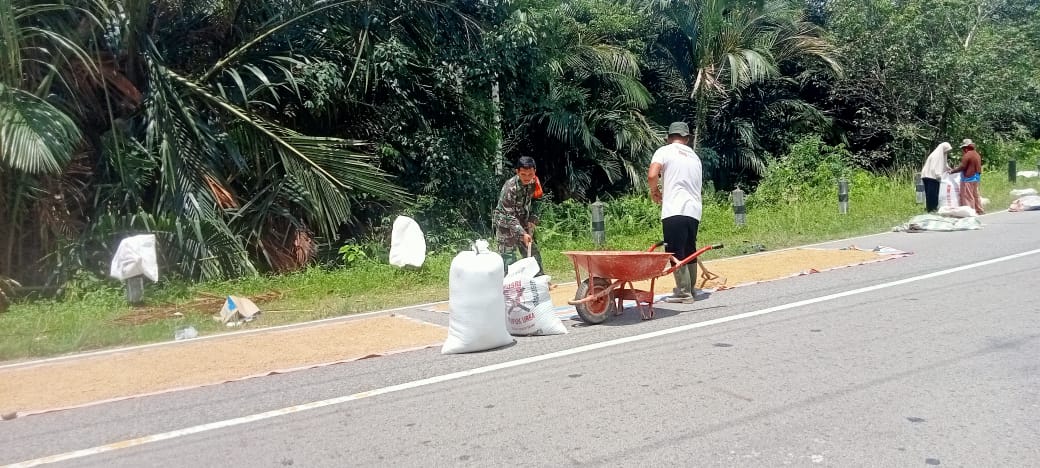Sertu Haidir Nainggolan mengatakan ,Usai memanen padi tersebut langsung dijemur biar segar dan terjaga dengan baik kualitasnya ketika dimasukkan kedalam karung agar tidak busuk ujarnya.
