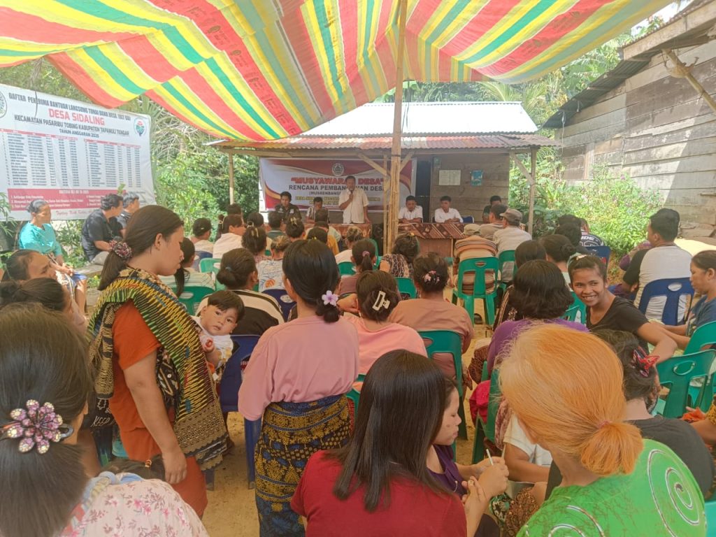 Tapteng-Dalam mendukung program pemerintahan di Desa ,Babinsa Koramil 02/Sorkam Serda Agus Tumanggor. menghadirin acara Musrenbang di Desa Sidaling ,Kec: Pasaribu Tobing. Kab: Tapanuli Tengah,Jumat(23/01/2026).