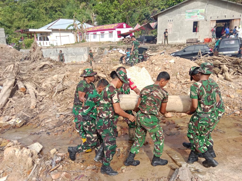 Tapteng-Hujan deras intensitas tinggi akibat kan longsor hingga menimpa ruas Jalan I.L Nomensen Nagari Salayo, Kecamatan Sibolga Utara. Untuk itu Babinsa Koramil 06/Kota Sibolga Kodim 0211/TT Sertu Domu Tua Panjaitan bersama Personil Yon TP 905 melaksanakan kegiatan karya bakti pembersihan longsoran sisa material yang menimbun ruas jalan di Aek Parira Lingkungan I, Jalan I.L Nomensen, Kelurahan Angin, Kecamatan Sibolga Utara, Selasa (30/12/2025).
