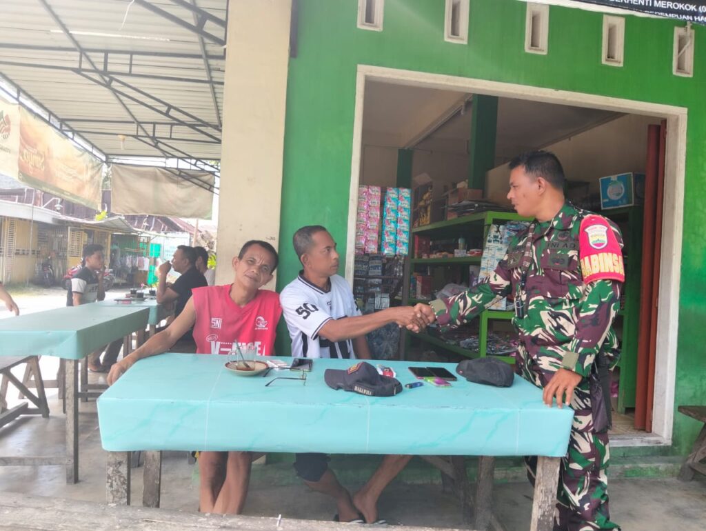 TAPTENG_Dalam membina kebersamaan dengan warga binaan, Serda Sufrianto Sibarani melaksanakan kegiatan Komunikasi Sosial (Komsos). Bertempat di salah satu warung milik bapak Roberto sinaga di desa bondarsihudon II Kecamatan Andam dewi.Kabupaten Tapanuli Tengah.