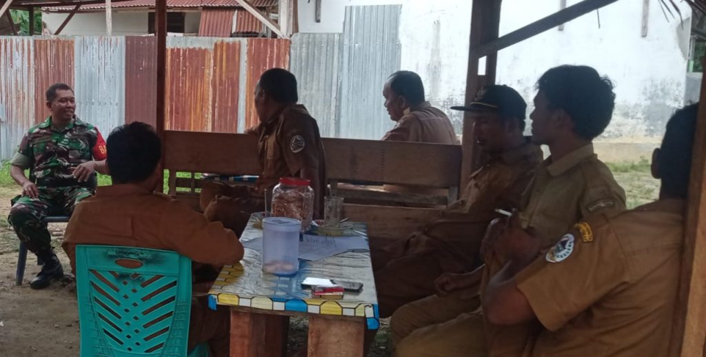 TAPTENG_Guna meningkatkan hubungan kerja yang baik di wilayah binaan Babinsa Koramil 02/Sorkam, Serka.Edi Herwanto. melaksanakan Komunikasi Sosial(Komsos)Bersama. Aparat desa.bertempat di desa.Pahiyeme Kec.Sorkam.Barat Kb.Tapanuli Tengah