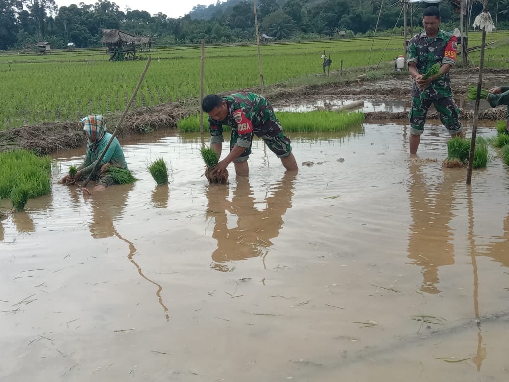 Tapteng_Dalam upaya meningkatkan ketahanan pangan dan produktivitas pertanian di Kelurahan Lumut, Kabupaten Tapanuli Tengah,Koptu Roni Nasution anggota Kodim 0211/TT, Babinsa Koramil 04/Pinangsori,aktif turun ke lapangan untuk membantu para petani. Kali ini, ia terlibat langsung dalam kegiatan Penanaman padi di lahan pertanian ibu Diana hasibuan, Kegiatan yang berlangsung pada Rabu (09/04/2025) ini bertujuan untuk Meningkatkan Ketahanan Pangan .