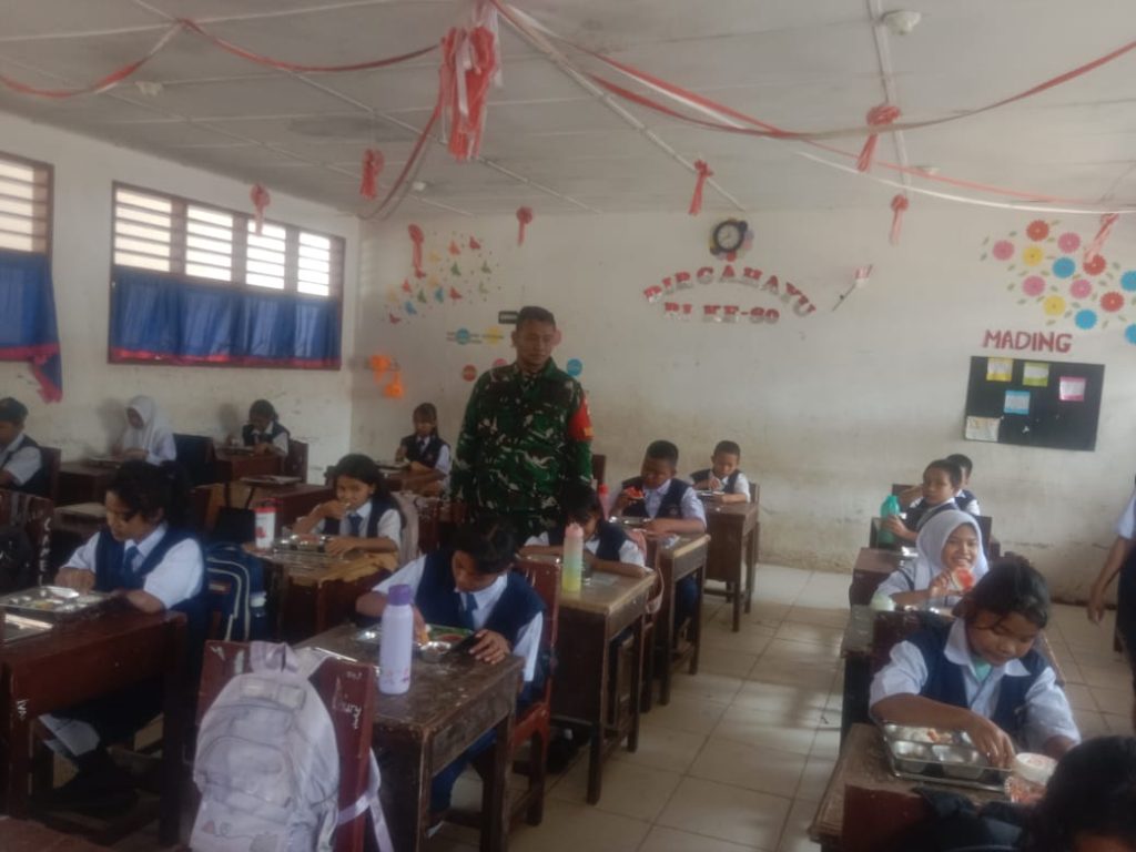 Tapteng – Babinsa Koramil 05/Kolang Kodim 0211/TT Serda Armin Simanjuntak melaksanakan pendampingan pendistribusian Makanan Bergizi Gratis kepada Siswa Paud, TK ,SD, SMP dan SMA di wilayah Kecamatan Tapian Nauli, Kabupaten Tapanuli Tengah. Rabu (05/11/2025)