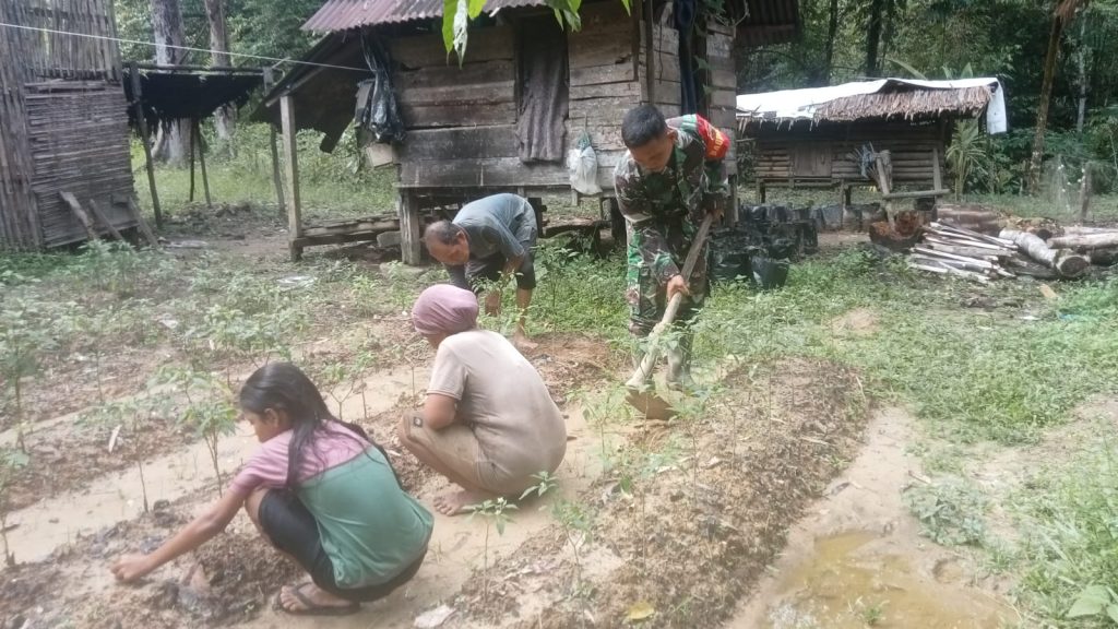 Tapteng _ Koramil 05/Kolang Kodim 0211/TT, Sertu Haidir Nainggolan melaksanakan pendampingan kepada petani cabai dalam pembuatan bedengan di Desa Tapian Nauli IV, Kecamatan Tapian Nauli, Kabupaten Tapanuli Tengah. Selasa (25/11/2025)