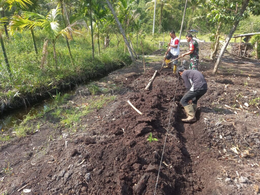 Tapteng _ Koramil 05/Kolang Kodim 0211/TT, Koptu Agus Santo Simamora melaksanakan pendampingan kepada petani cabai dalam pembuatan bedengan di Desa Unte Mungkur II, Kecamatan Kolang, Kabupaten Tapanuli Tengah. Senin (25/08/2025)
